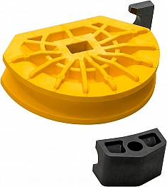 - Гибочные сегменты и упоры скольжения 180°, прочные и стойкие к деформации, из высокопрочного, усиленного стекловолокном полиамида. Оптимальное согласование гибочного сегмента и упора обеспечивает скольжение в соответствии с материалом без образования гофры и заломов. Шкалы угла на каждом сегменте и маркировка на каждом упоре для более точного изгиба. Быстрая смена насадок.