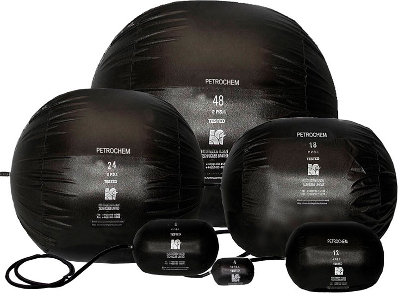 Химостойкие термостойкие цилиндрические пневмозаглушки для труб HFT PetroChem PSO0011 (ХФТ ПетроЧем ПСО0011) – маслобензостойкие пневматические заглушки с внутренней мембраной, защищающей надувной латексный мешок, для временного перекрытия трубопроводов и газопроводов Ø 275 мм (11") с углеводородными газами и жидкостями, особенно в случае ограниченного доступа в трубу при проведении ремонтных работ, для проверки герметичности трубопроводных систем, гидростатических испытаний при низком давлении, термического формования изгибов на месте, сантехнических работ, предотвращения попадания в трубы атмосферных осадков, мусора, животных и т.д. при механической обработке, в волоконно-оптической отрасли.