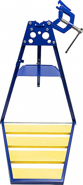 – Верстак-тренога: сталь, откидной дощатый настил из дерева