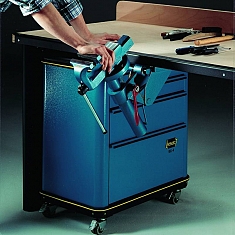 – Механический складной подъемник Peddi-Lift складывается под верстак, чтобы освободить на верстаке место для другой работы