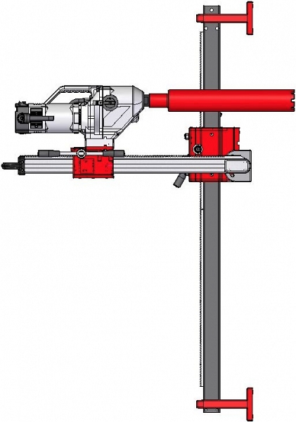 - Стальная наклонная колонна крепится на шарнирах к опорной плите и имеет дополнительный упор для большей жесткости, возможность алмазного сверления отверстий под углом от 0° до 75°